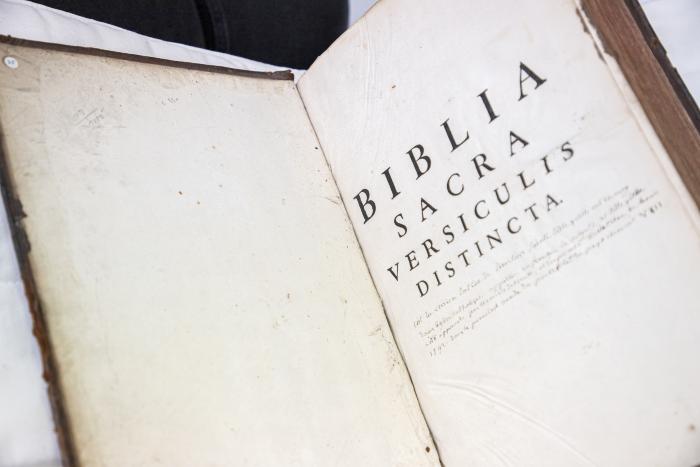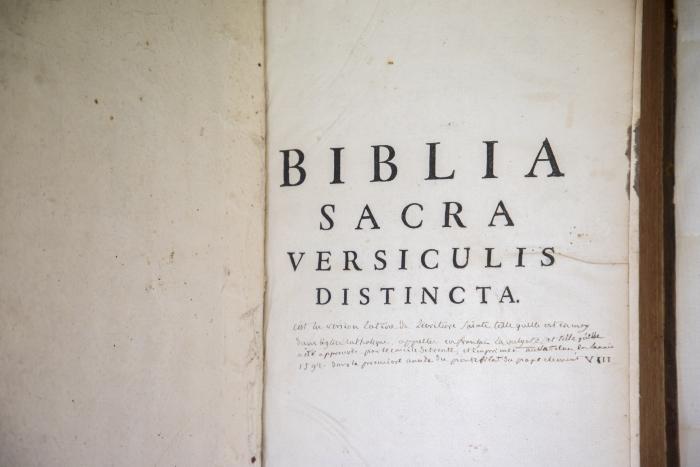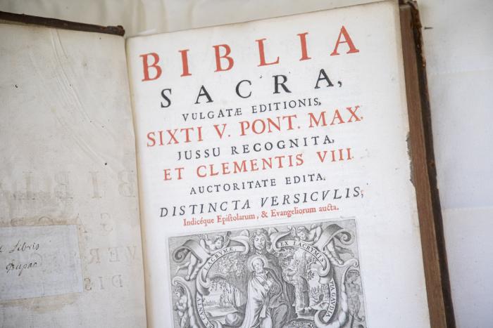 Titres d'objets : Biblia sacra, Vulgatae editionis, Sixti V Pont. Max. jussu recognita, et Clementis VIII, auctoritate edita.Distincta versiculis, indiceque epostolarum, Evangelisium aucta.