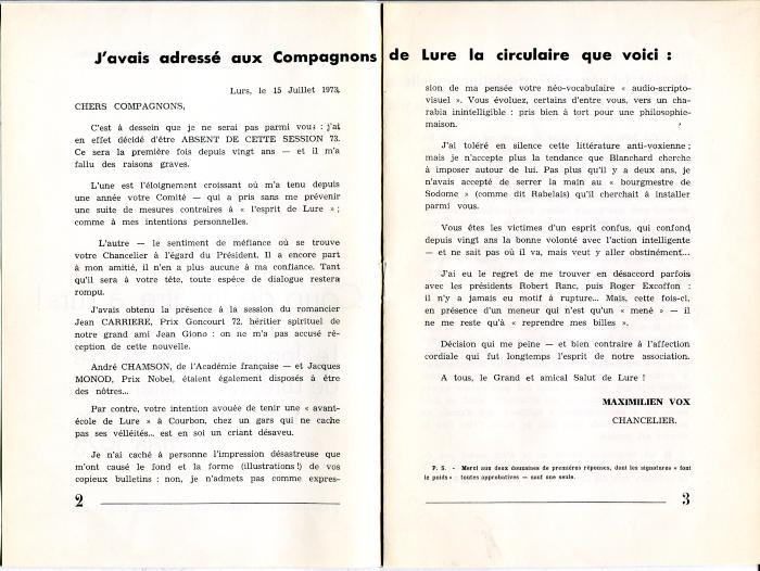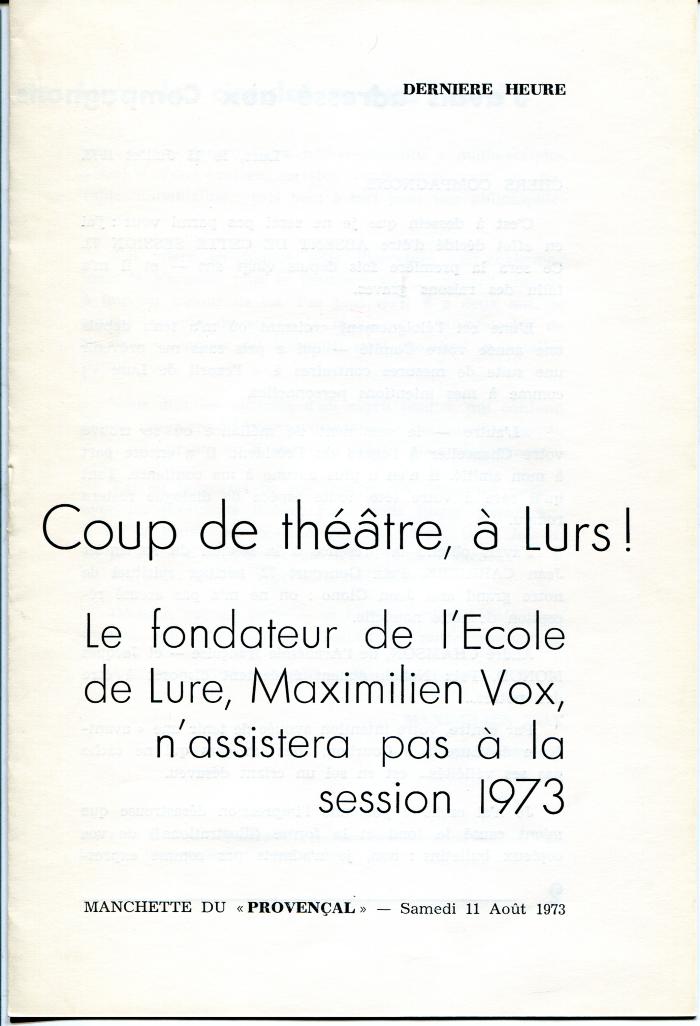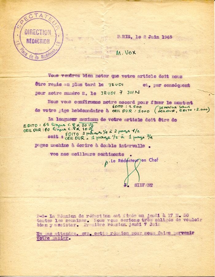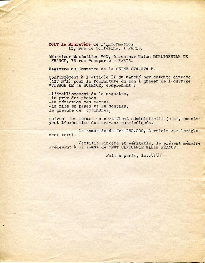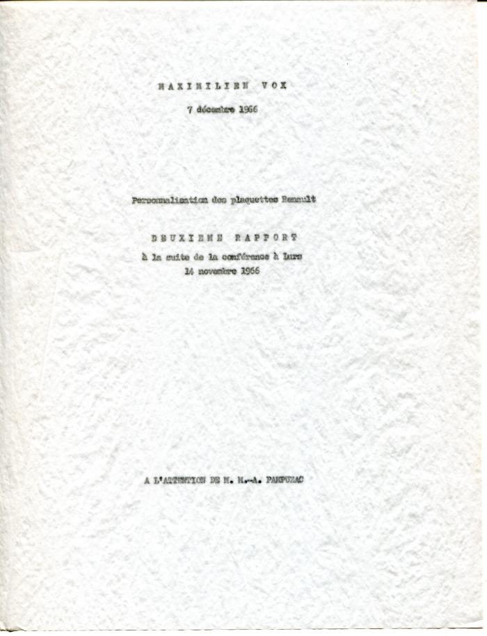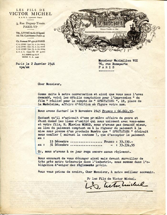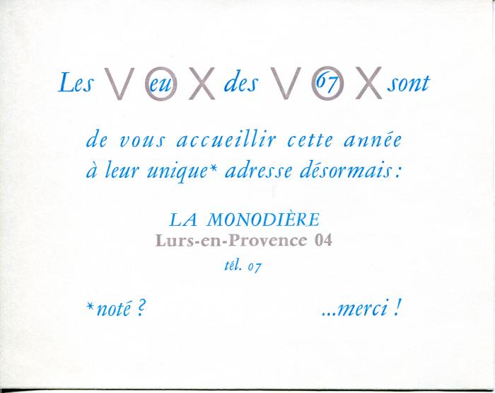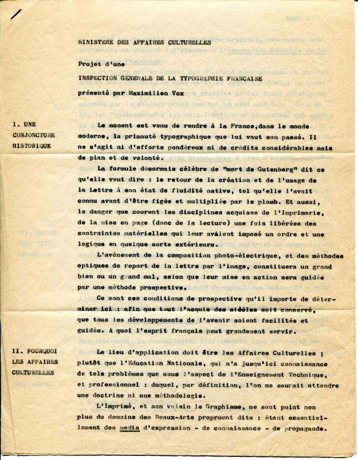 Observations : Maximilien Vox, né Samuel William Théodore Monod (1894-1974) fut dessinateur, caricaturiste, graveur, illustrateur, éditeur, journaliste, critique d'art, théoricien et historien de la lettre et de la typographie française. Il était le fils du pasteur Wilfred Monod (1867-1943) et le frère du naturaliste Théodore Monod (1902-2000). Après des débuts comme caricaturiste et dessinateur de presse (Floréal, L’Humanité), Vox se tourne vers l’édition. Il fonde sa propre maison d’édition, Le Jardin de Candide, puis travaille comme graveur, maquettiste, illustrateur et directeur artistique pour de nombreuses grandes maisons : Grasset, Plon, Union bibliophile de France, Larousse, Denoël… Il dessina le logo de la collection de romans policiers Le Masque ainsi que les lettrines du Grand Larousse du XXe siècle. En 1936, il rédigea la première version de son Standard typographique pour les chemins de fer Paris-Lyon-Méditerranée (PLM), considéré come l’un des premiers « chartes graphiques » français. Deux ans plus tard il dessine le logo pour la nouvelles SNCF, adaptant son Standard typographique aux besoins de la nouvelle société. Au lendemain de la Deuxième Guerre mondiale il créé la revue professionnelle Caractère dont le numéro de noël rassemble toutes les nouveautés typographiques, techniques et graphiques de 1951 à 1964. En 1952, avec Jean Garcia, Jean Giono, Lucien Jacques, Robert Ranc, il fonde à Lurs-en-Provence Rencontres internationales de Lure, qui réunit chaque année des spécialistes de la typographique, due design graphique, de l’imprimerie et du livre. En 1970, il rédigea ses mémoires, restés inédits à ce jour. Maximilien Vox exerça le métier de directeur artistique pour de nombreuses sociétés (dont notamment les Galeries Lafayette). Il fut également l’auteur de nombreux articles sur l’ensemble des métiers du livre. Maximilien Vox a laissé son nom au système de classification des caractères typographique qui, agréé par l’Association typographique internationale (ATypI), devient classification Vox-AtypI en 1962 et sera adopté comme norme internationale. Cet ensemble de documents concernant la vie et les activités graphiques de Vox vient compléter les fonds Fernand Baudin (don 1998) et les archives des Rencontres internationales de Lure (dépôt).