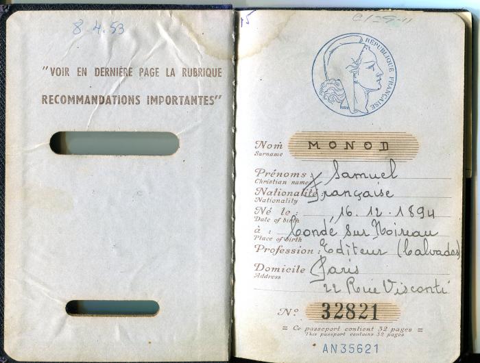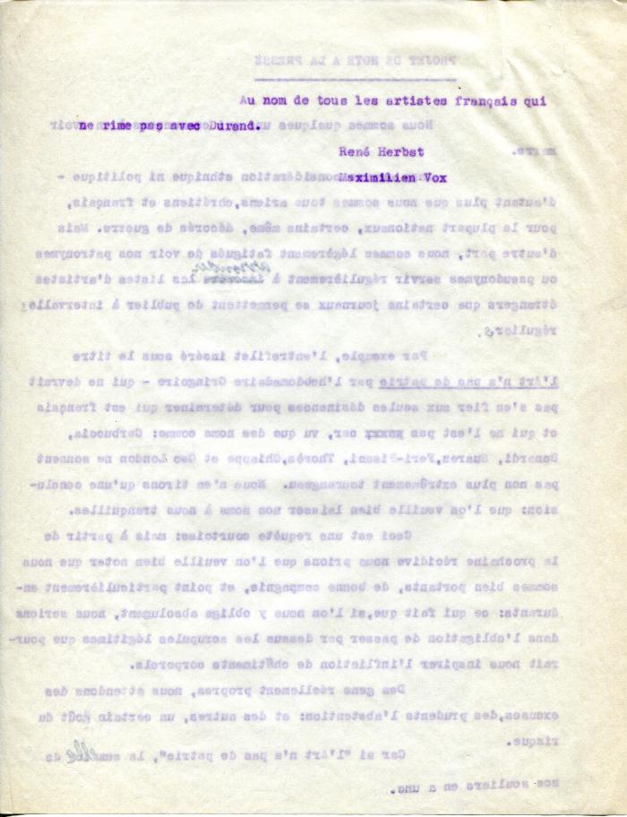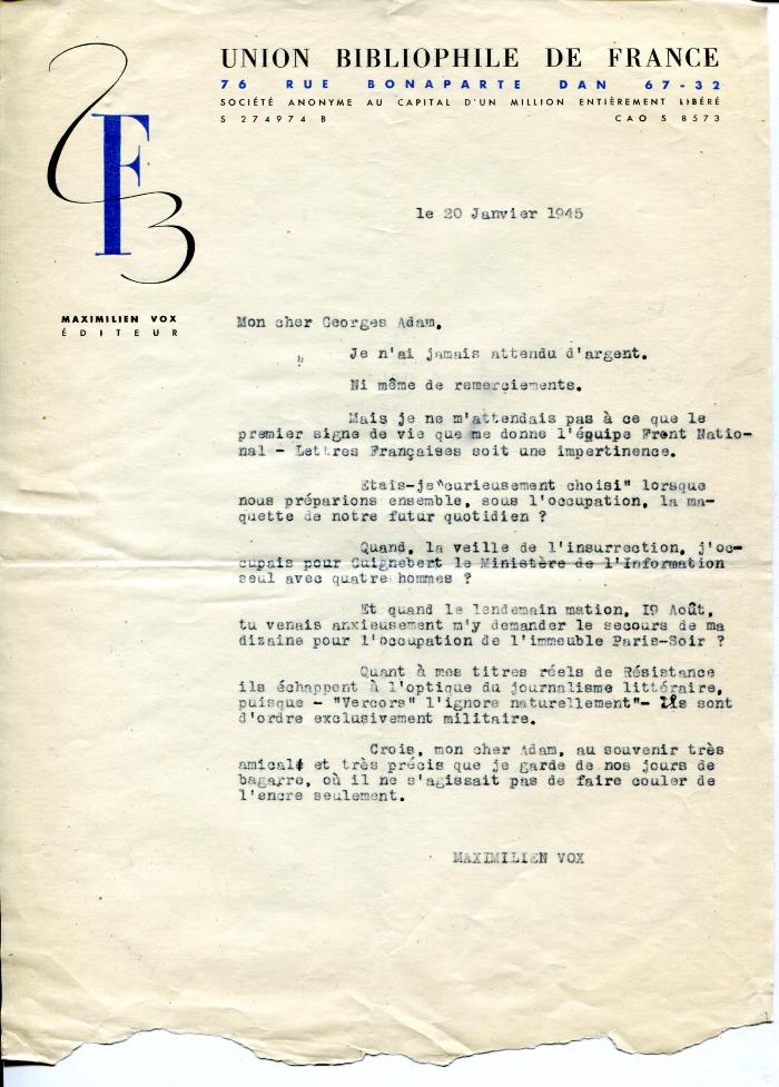 Titres d'objets : Ensemble de documents et objets concernant la vie et l'œuvre de Maximilien Vox (né Samuel William Théodore Monod (1894-1974)